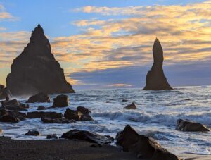 Unlike typical beaches, Reynisfjara is covered in black volcanic sand, with towering basalt columns and powerful crashing waves.